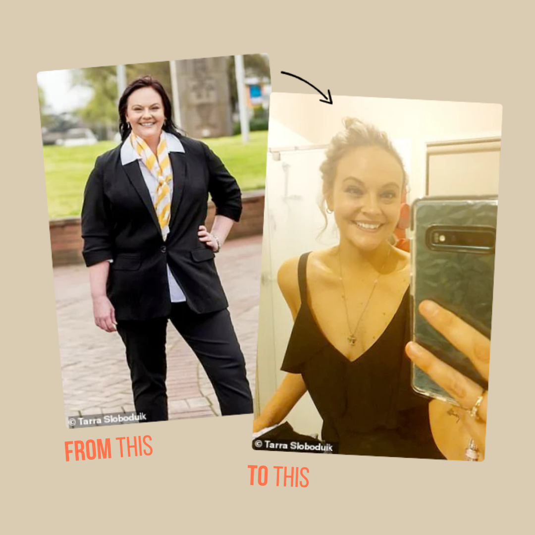 The real estate agent, from Melbourne, tipped the scales at 91.6kg at her heaviest after overindulging on sugary snacks, soft drinks and large portions of food.